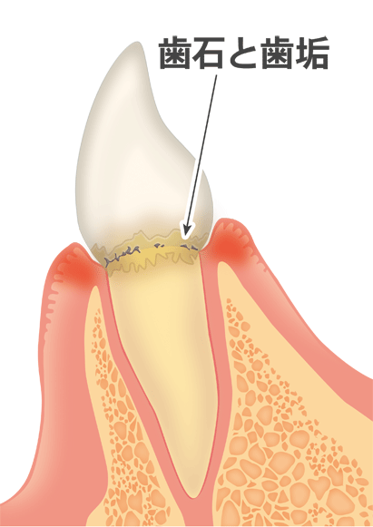 歯石は歯面に付着したプラークに唾液中のリン・カルシウムが混じって石灰化したもので、表面は粗造でプラークが更に付着しやすいような構造をしており、歯に強固に付着しています。そして、強い病原性を持っています。