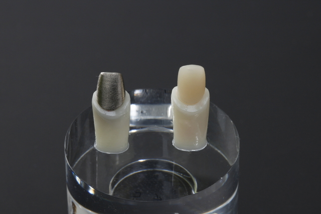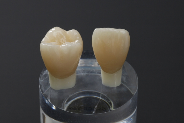 セラミックとレジンを合わせた素材の被せ物です。柔軟性が高く、天然歯に近い硬度を持つことが特徴です。噛み合う歯に負担をかけないメリットがありますが、強度的には高いとは言えません。