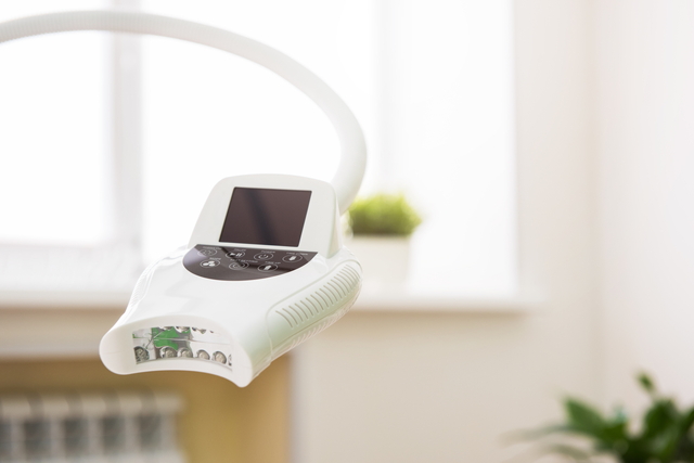 オフィスホワイトニングは当院内で施術を行います。歯科衛生士が歯に薬液を塗り、専用の照射機で光を当てることで歯を白くする施術です。